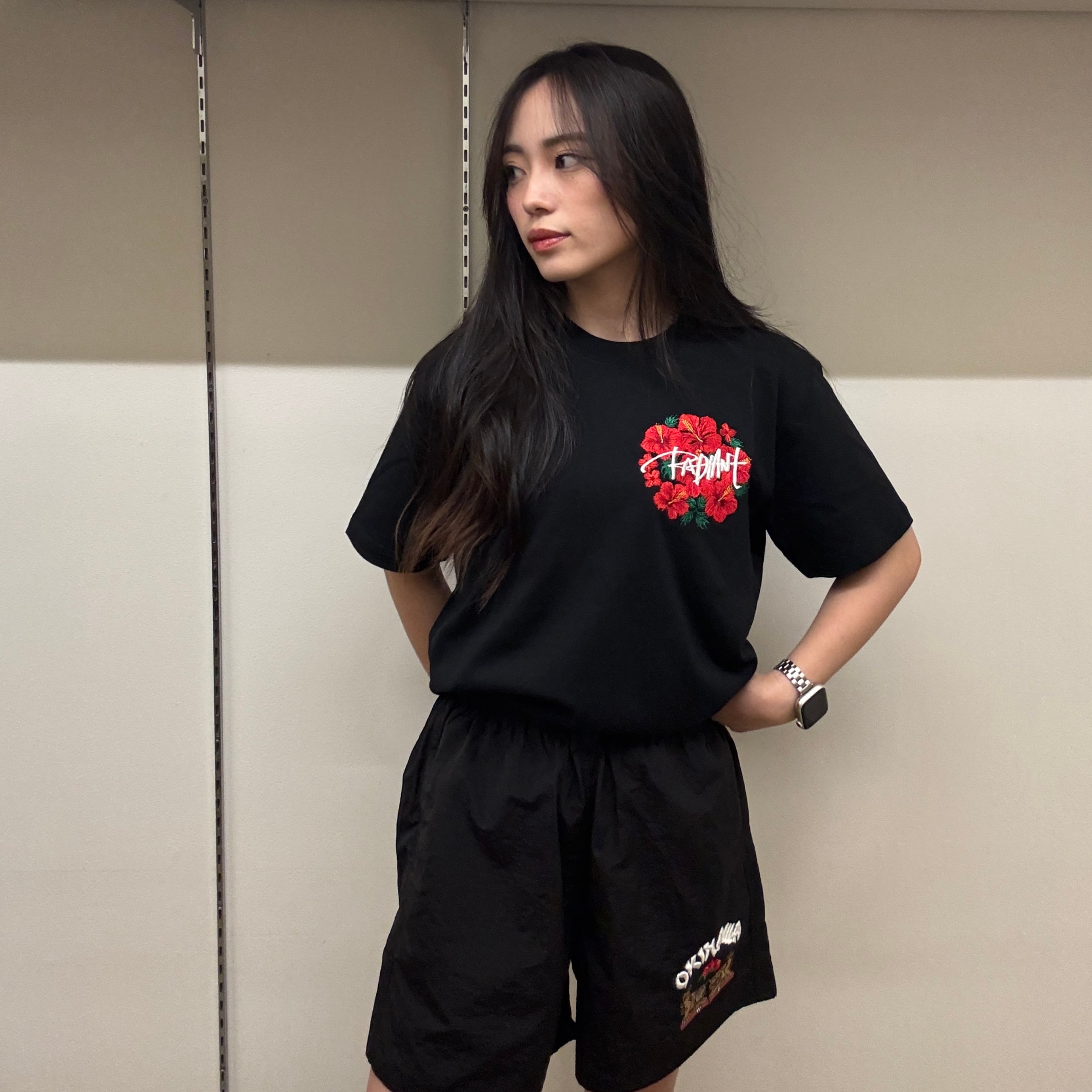 【刺繍Tシャツ】左胸ハイビスカス