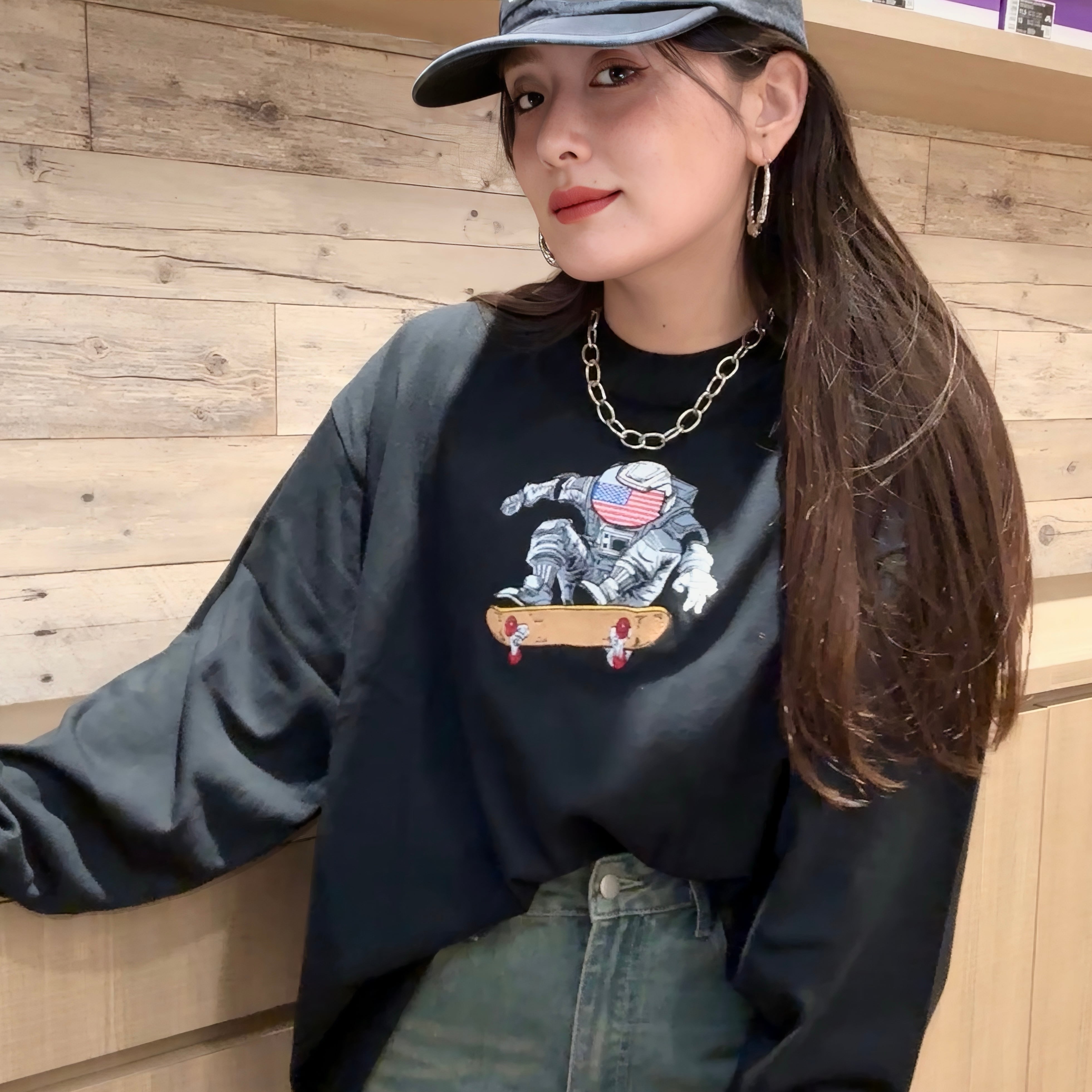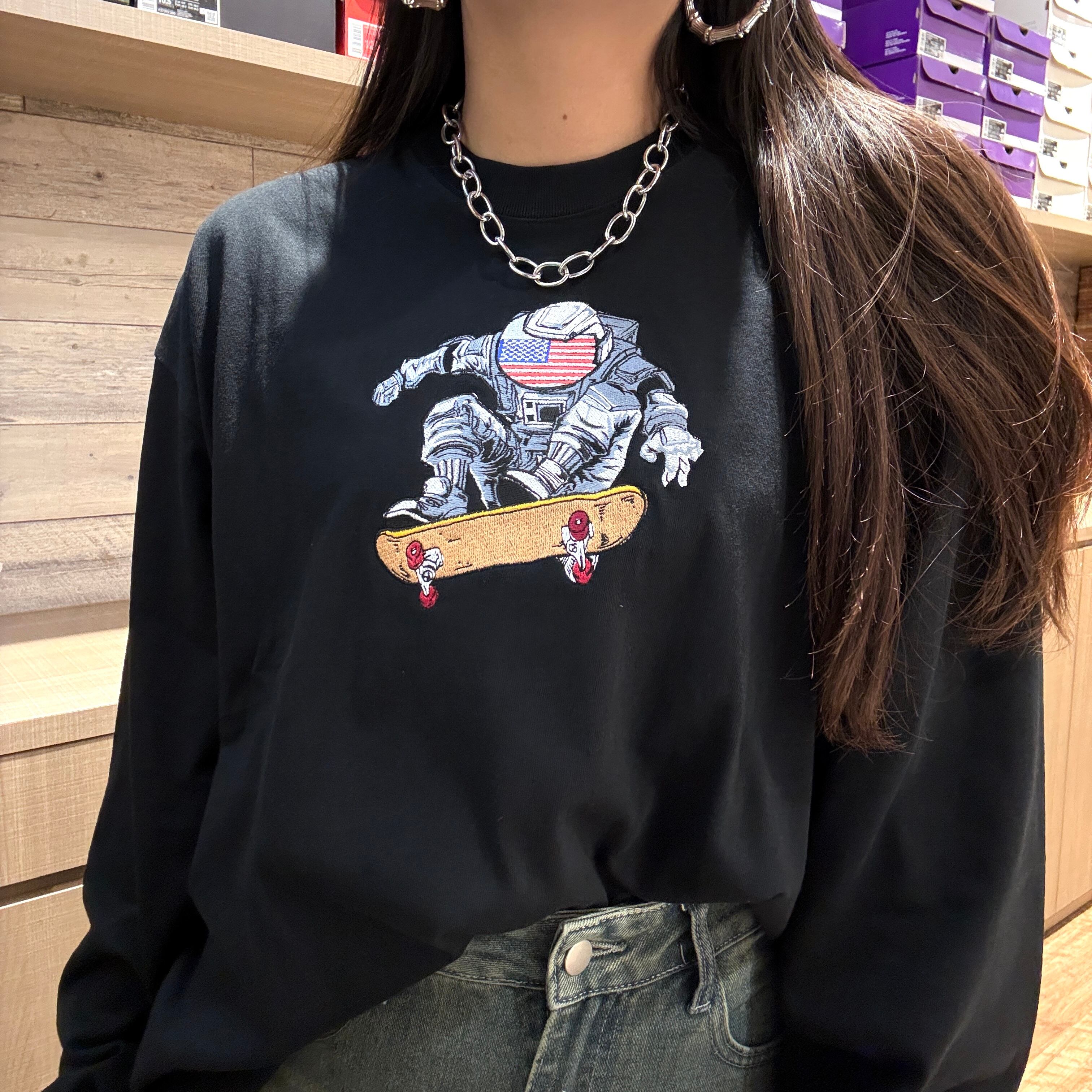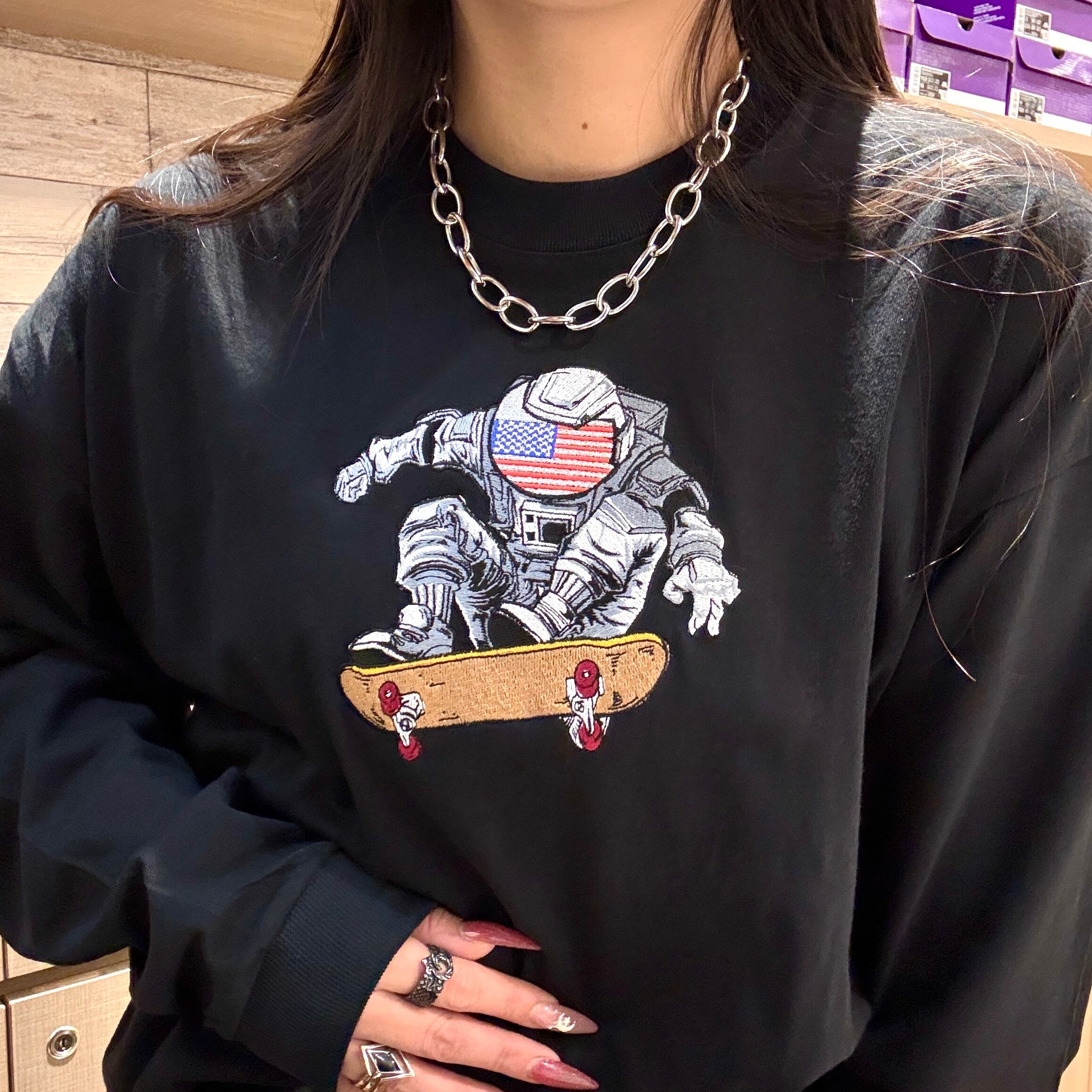 【 刺繍 ロンT 】宇宙USスケボー